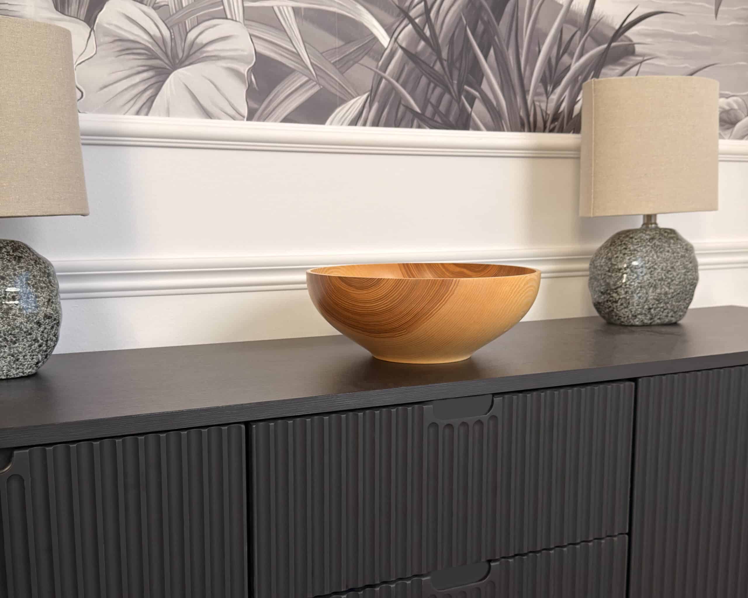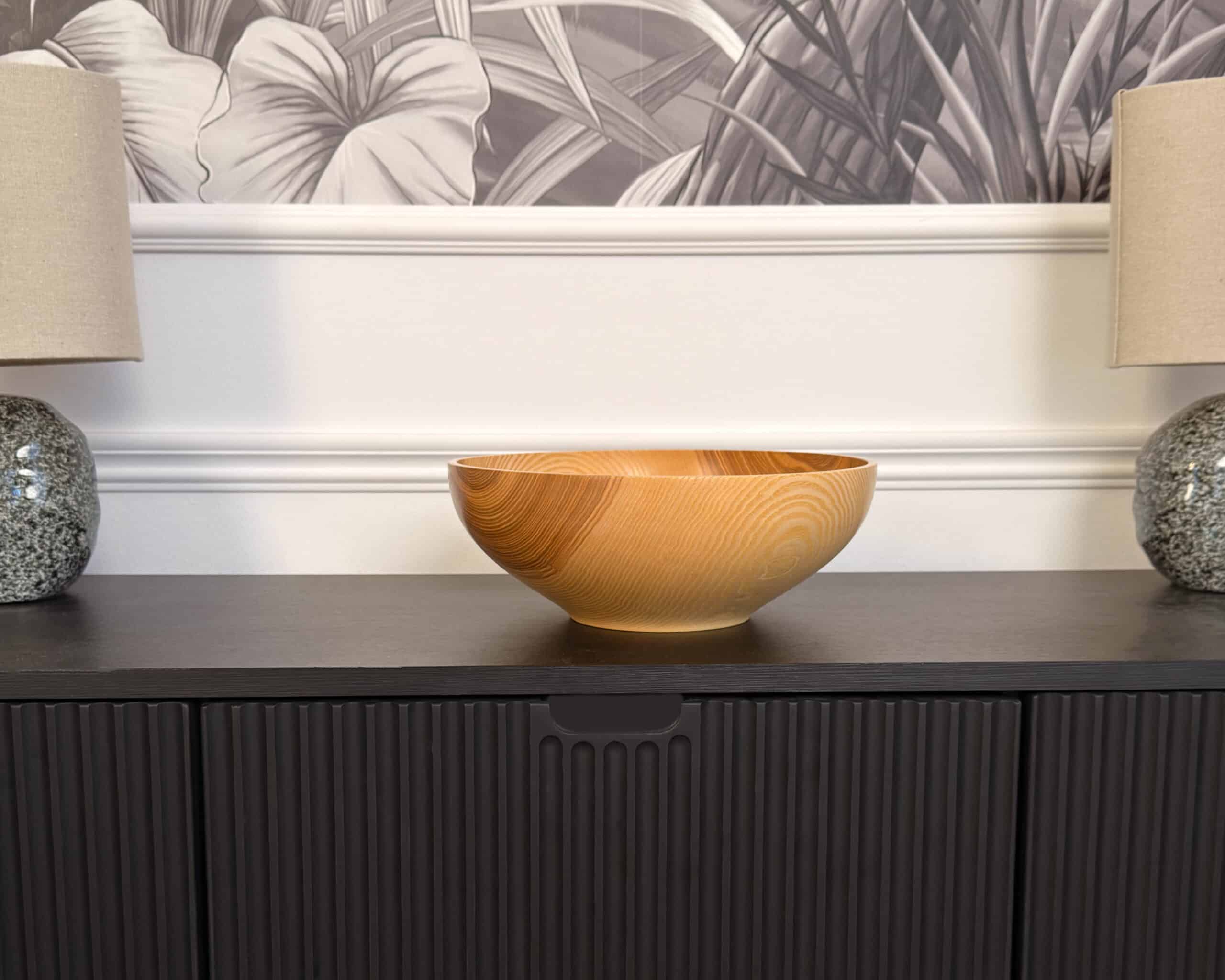 Misa drewniana toczona z jednego kawałka drewna jesionu.