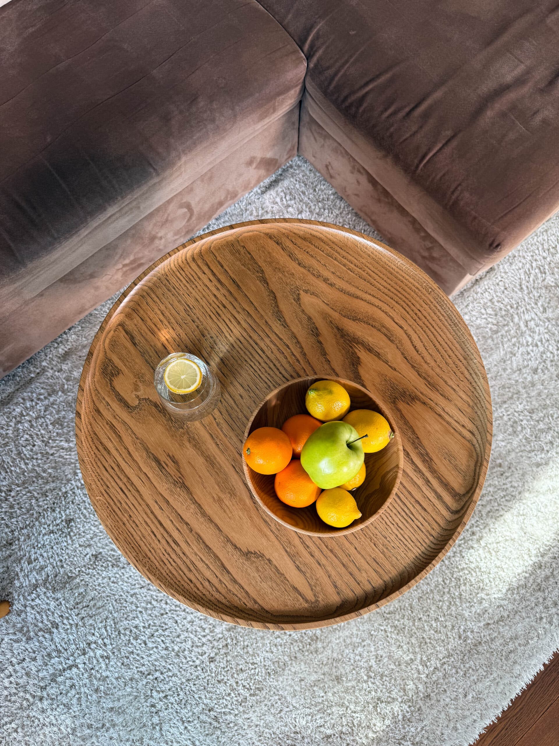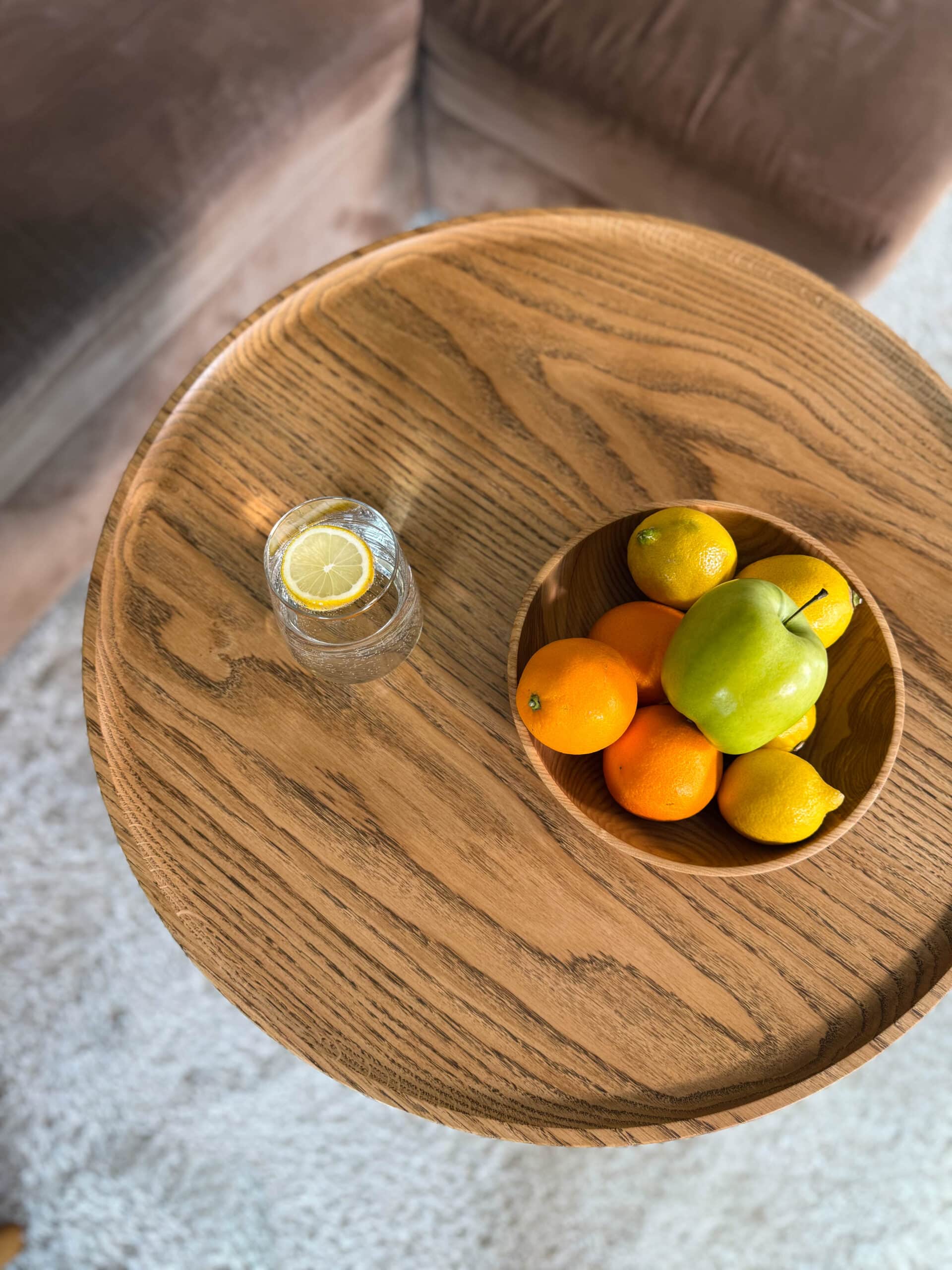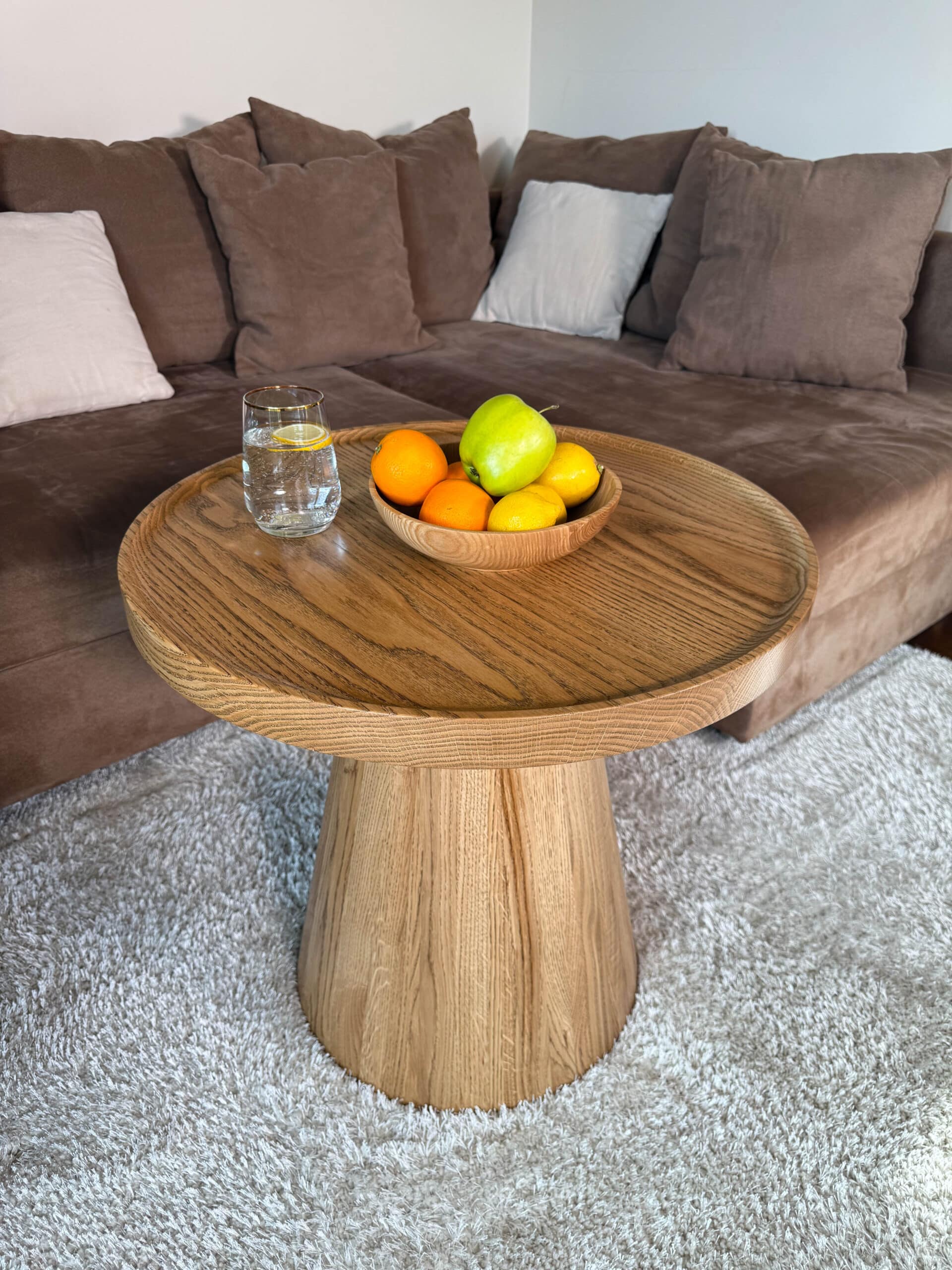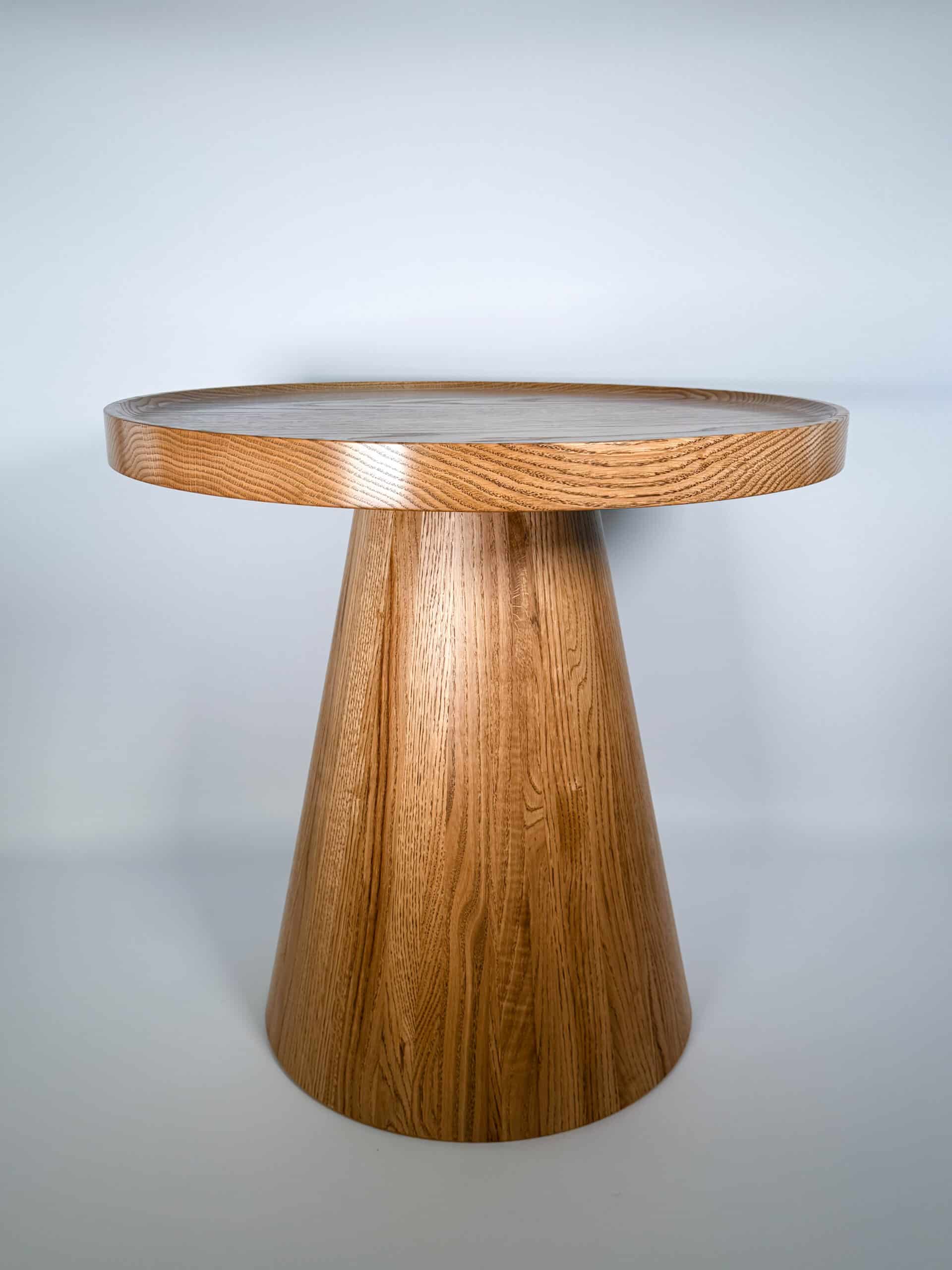 Zainspirowana tradycyjnymi technikami bednarskimi (jak te beczki na wino!), noga jest sklejona obwodowo i pusta w środku. Dzięki temu stolik jest lekki, łatwy do przenoszenia, a jednocześnie odporny na spękania. Naturalne, nieregularne słoje drewna dodają autentycznego uroku, sprawiając, że stolik ma swój własny, niepowtarzalny charakter.