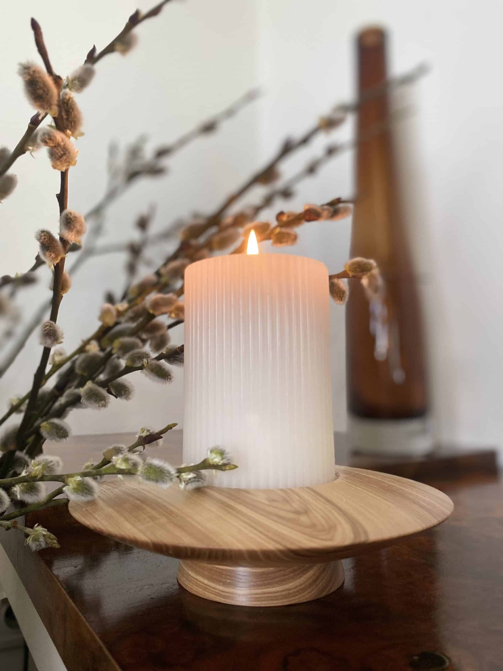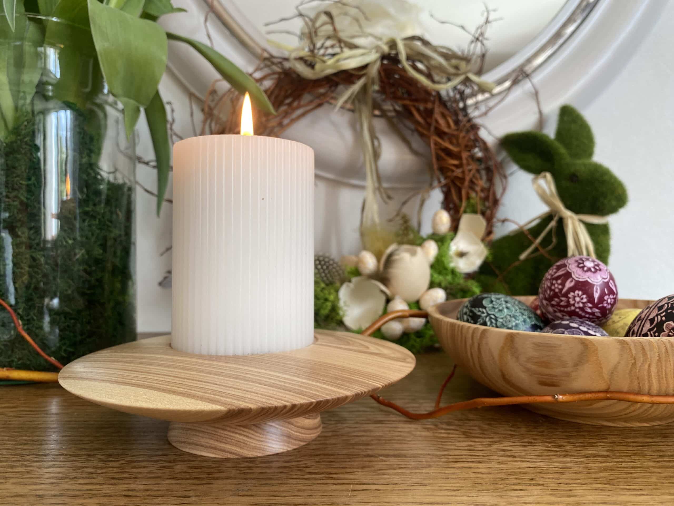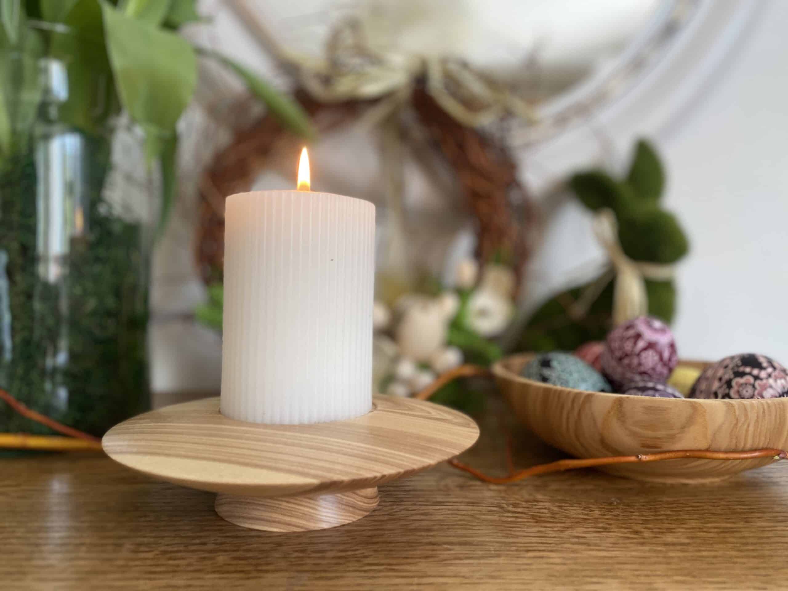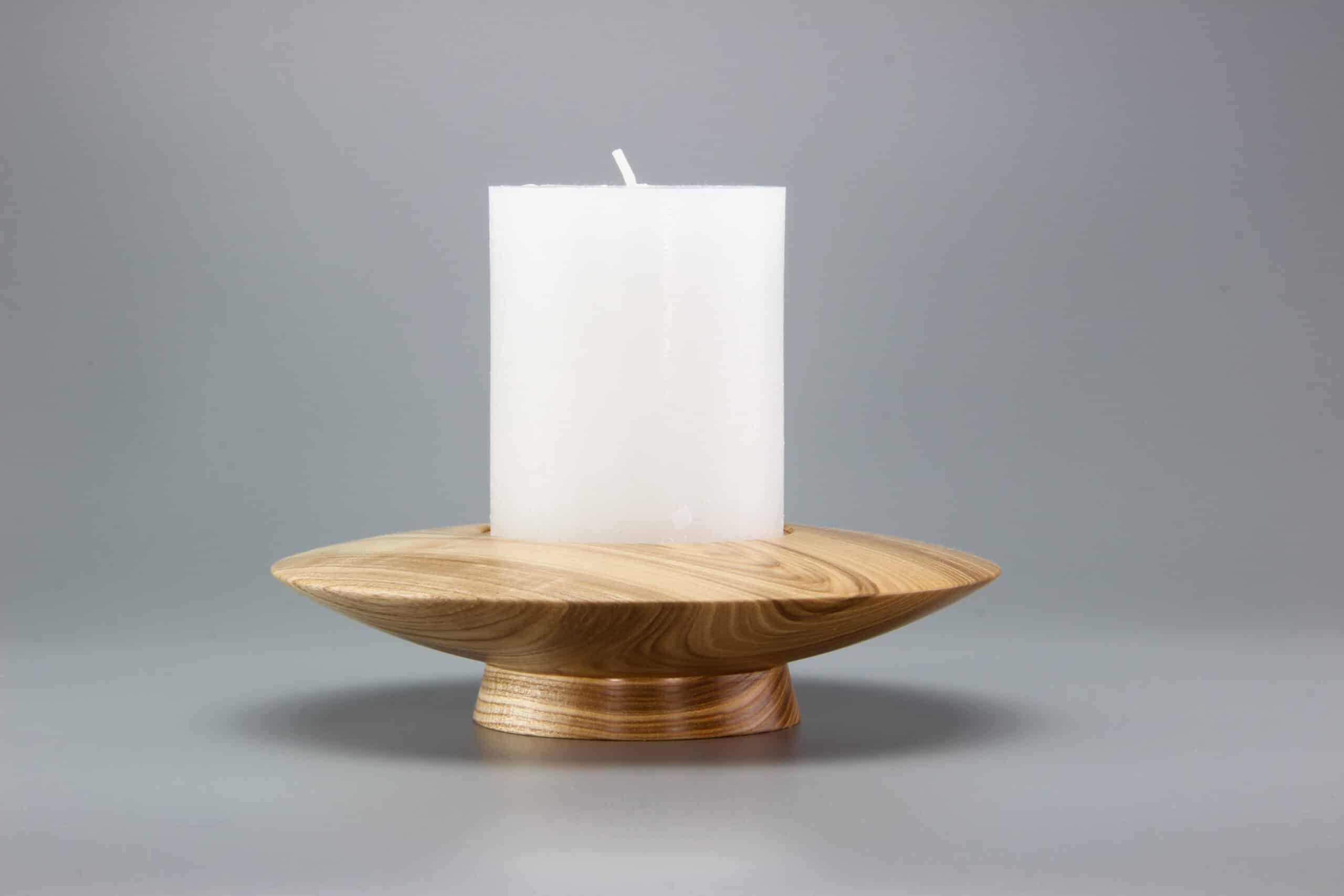 Świecznik toczony z jednego kawałka drewna Jesionu.