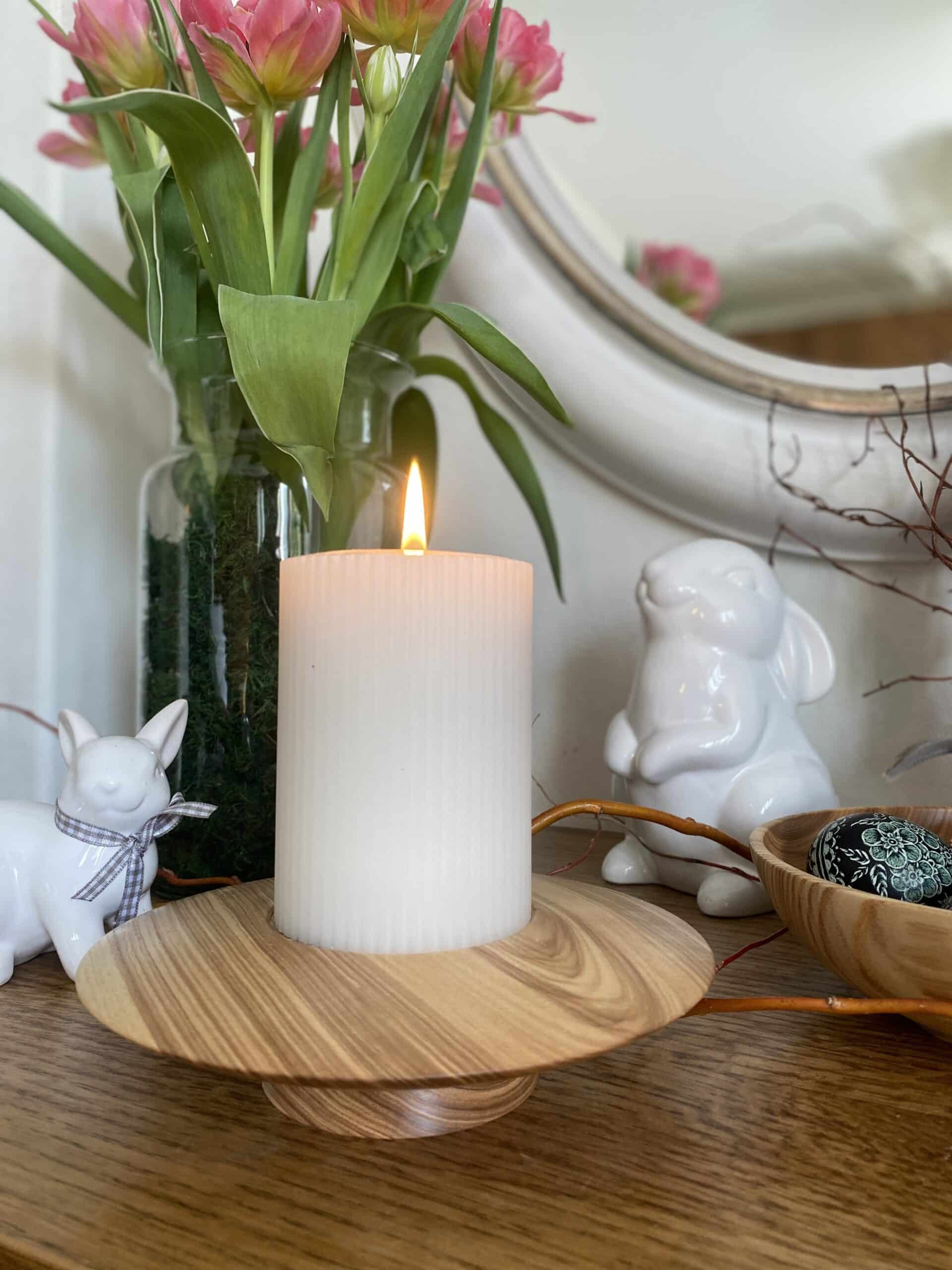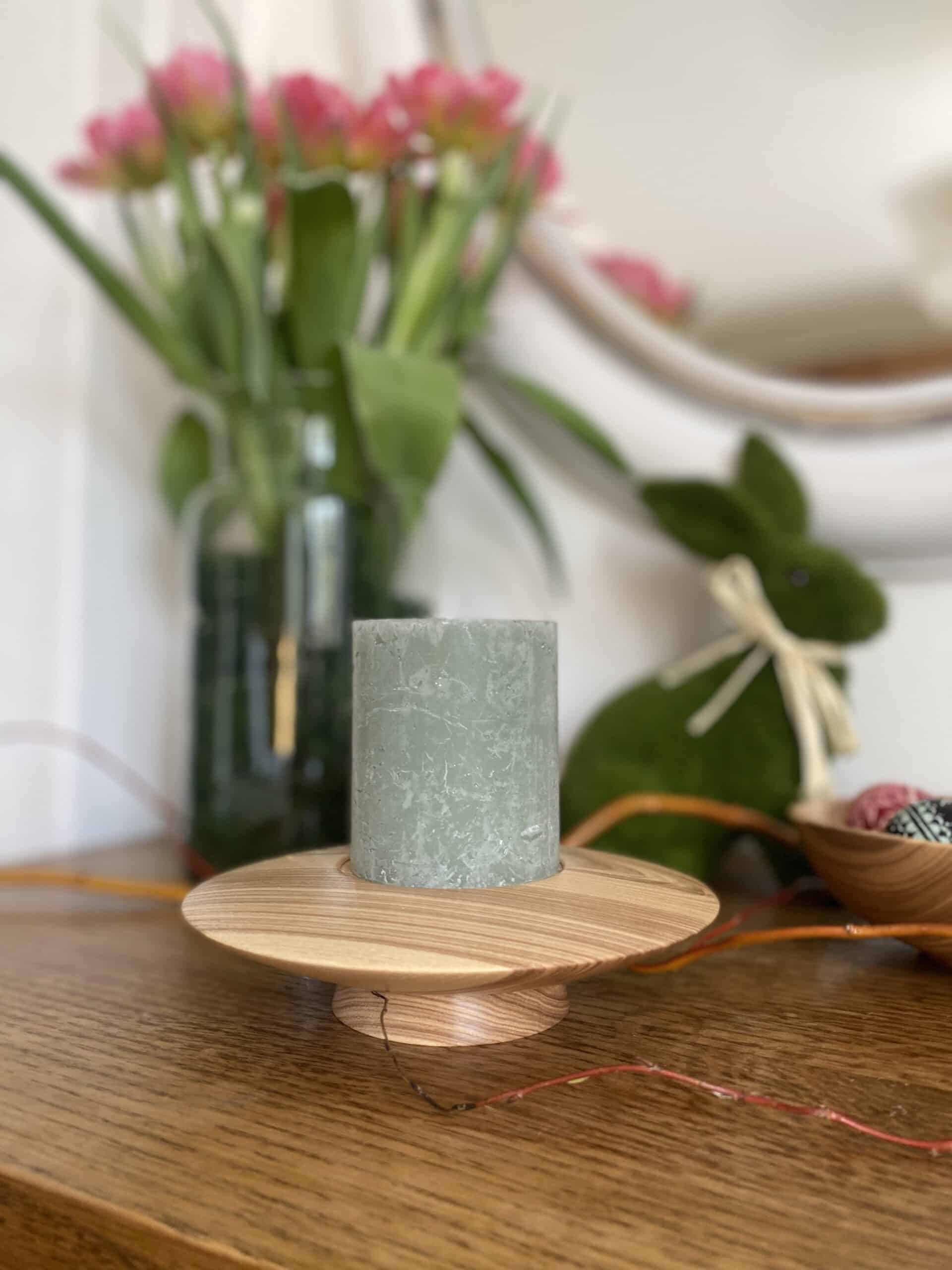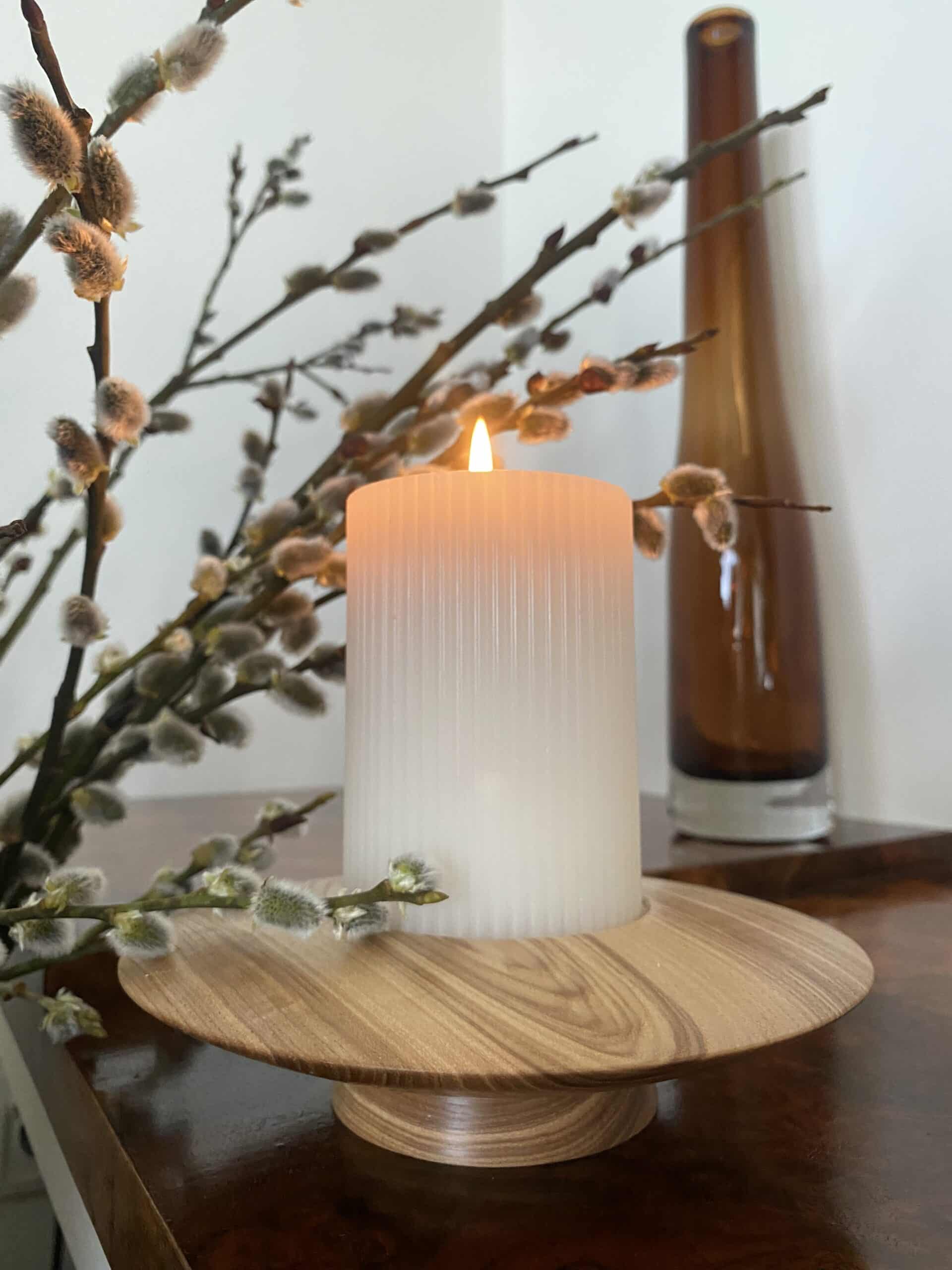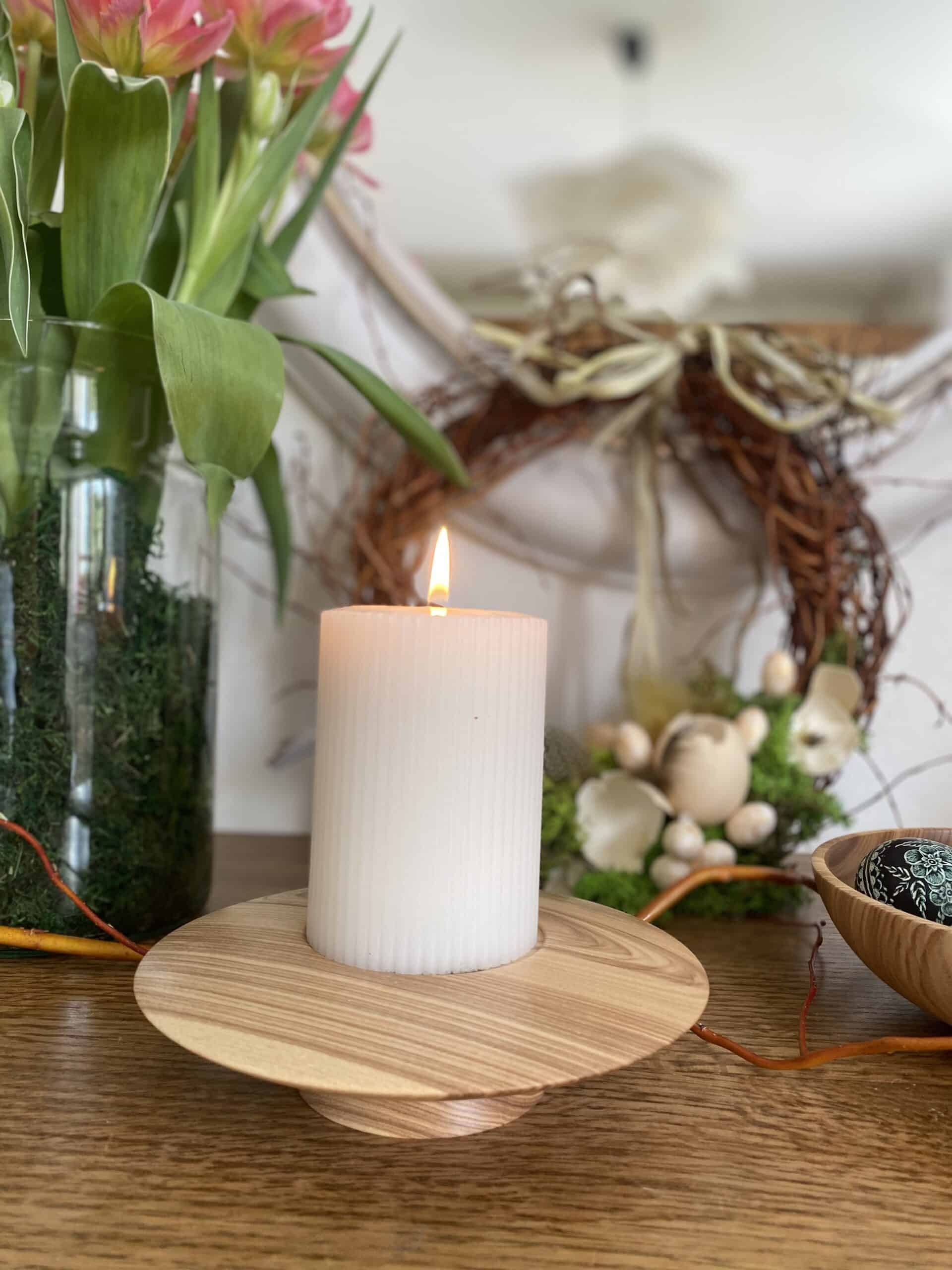 Świecznik toczony z jednego kawałka drewna Jesionu.